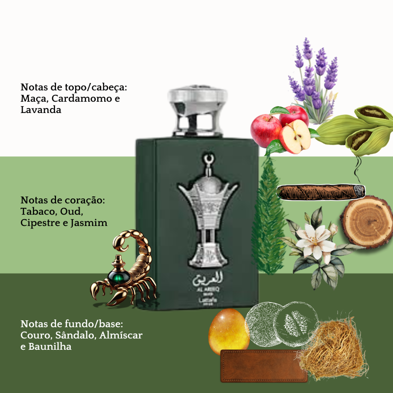 À medida que a fragrância se desenvolve, as notas de fundo revelam um rastro irresistível. O Couro e o Almíscar conferem um caráter sedutor e masculino, enquanto o Sândalo adiciona um toque amadeirado cremoso e elegante. Por fim, a Baunilha suaviza a composição com um toque sutil de doçura, garantindo uma finalização sofisticada e envolvente.