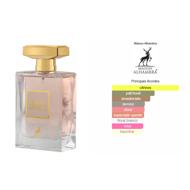 Como Moiselle de Maison Alhambra é uma fragrância oriental floral feminina que personifica a elegância atemporal e o charme irresistível da mulher sofisticada. Lançado em 2022, este perfume traduz delicadeza e poder em um só frasco, criando uma experiência olfativa envolvente e inesquecível.
