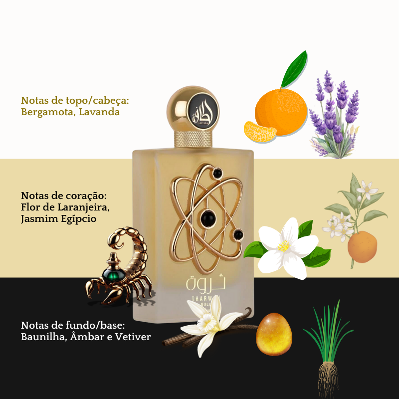 ✨🌟 Celebre sua feminilidade com Tharwah Gold. Encontre o seu na Scorpion's Perfumaria e envolva-se em uma fragrância que traduz luxo e sedução em cada borrifada! 🌟✨